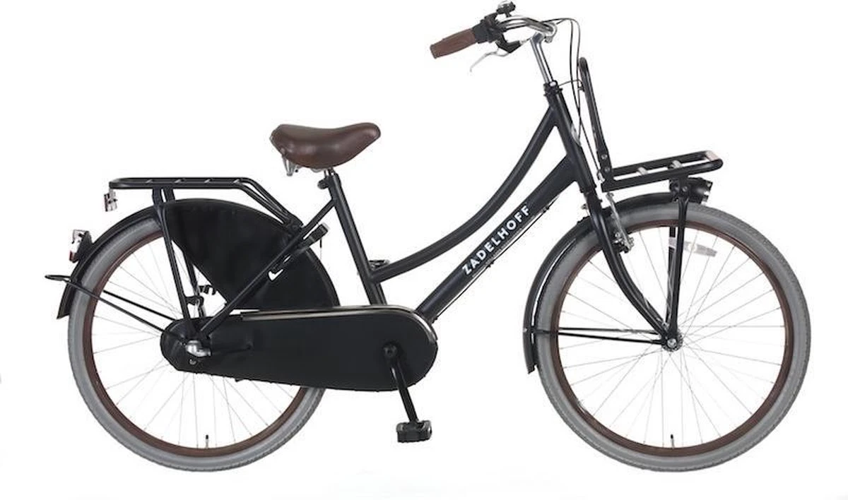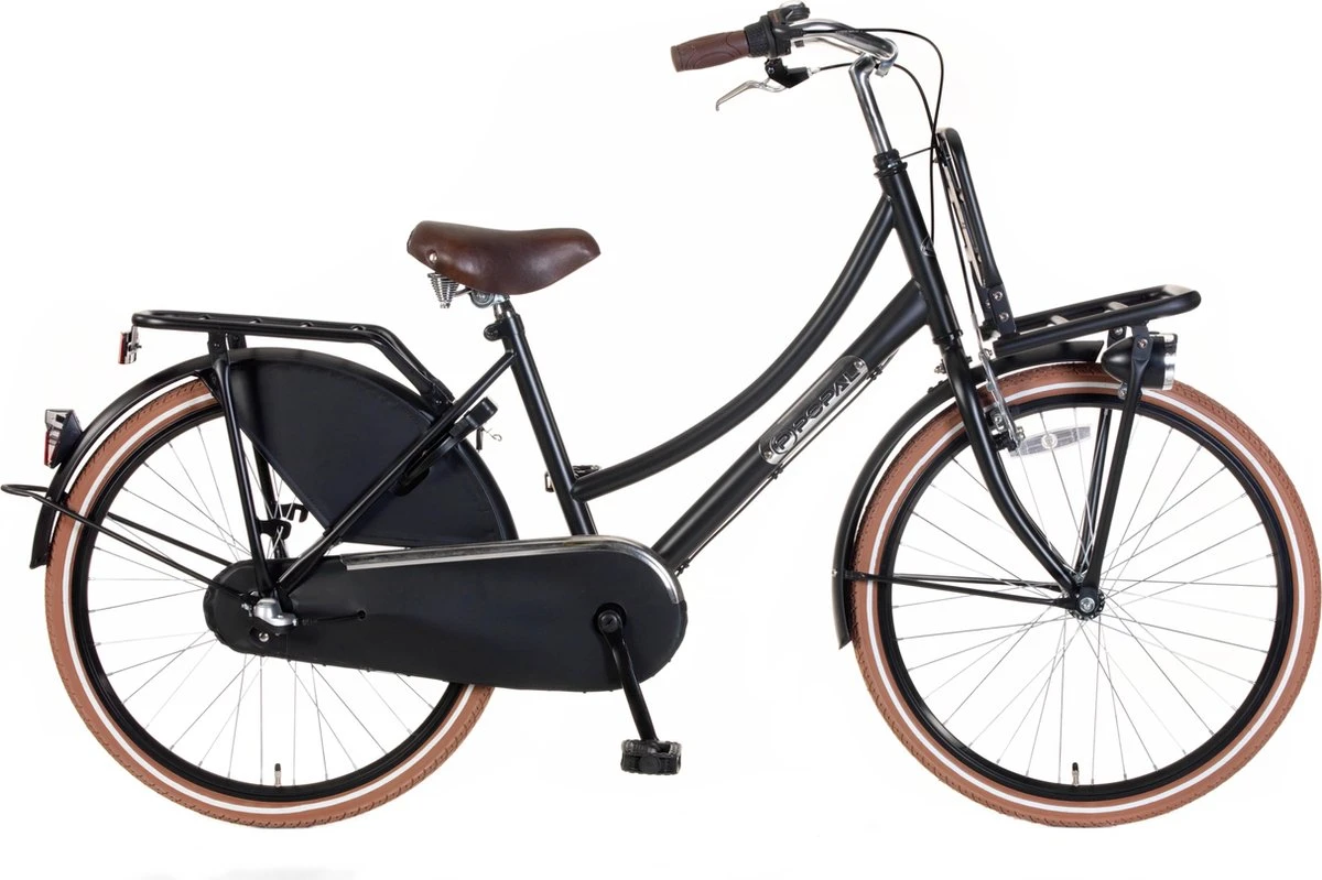 Popal Daily Dutch 24 inch Basic Plus – Mat Zwart is een stijlvolle transportfiets die gelet op de wielmaat geschikt is voor meisjes in de leeftijdscategorie 8 tot 12 jaar. de modern vormgegeven fiets beschikt over een voordrager, waarop een trendy fietskrat kan worden geplaatst of een tas kan worden vervoerd. Dat kan overigens ook achterop de Mat Zwarte Popal Daily Dutch 24 inch Basic Plus op de bagagedrager. Het zadel is comfortabel door het ontwerp, waardoor de beste ondersteuning wordt geboden tijdens het fietsen. De zithouding is bovendien ook ideaal doordat niet ver voorover geleund hoeft te worden om met de handen bij het stuur te komen. Ander gemak is er met de versnellingen. De drie Shimano Nexus gripshift versnellingen kunnen zo ingesteld worden dat het in ieder tempo aangenaam fietsen is. Aan het stevige stalen frame is een ringslot bevestigd en de Popal Daily Dutch 24 inch Basic Plus kan met de zijstandaard neer worden gezet. Achterop het spatbord van de fiets is er fietsverlichting aangebracht en voor bevindt zich de fietslamp onder de voordrager. De Popal Daily Dutch 24 inch Basic Plus – Mat Zwart met handrem en terugtraprem heeft verder een gesloten kettingkast en beschikt over jasbeschermers en reflectoren.