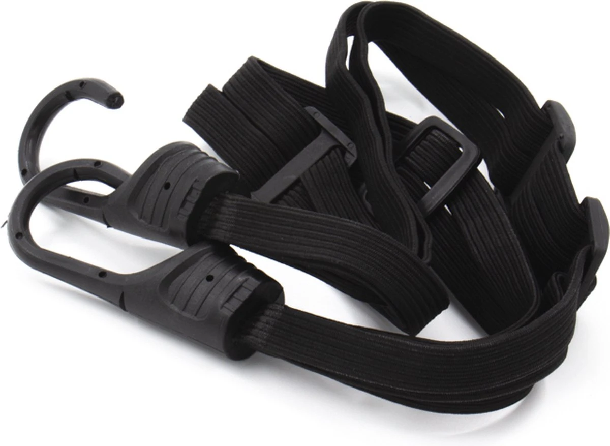 Met deze spinbinder speciaal voor de motor, scooter en fiets neem je gemakkelijk spullen mee zoals een extra helm, pakketjes of tassen. Hij is verstelbaar tot 60 centimeter en te bevestigen middels de twee haken.