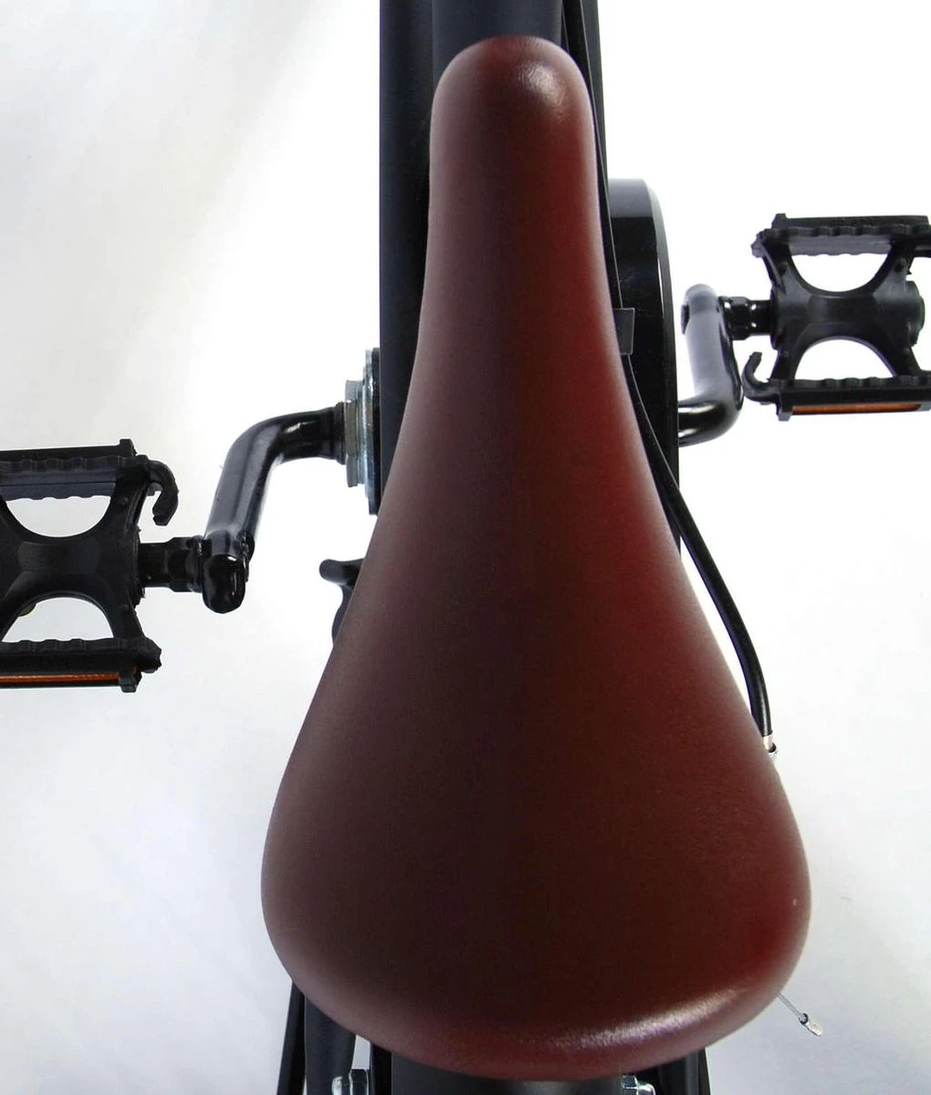 Veiligheid staat voorop! Daarom heeft deze gave fiets twee handremmen (geen terugtraprem), een gesloten kettingkast en afneembare zijwieltjes. Daarnaast heeft de fiets een leuke bel. Ook aan het comfort is gedacht. De mooie zwarte Volare fiets met bruine accenten heeft een zacht zadel, een tijdloos design, en een uniek frame dat wel tegen een stootje kan. Om zo lang mogelijk van de fiets te kunnen genieten zijn het zadel en stuur in hoogte verstelbaar.